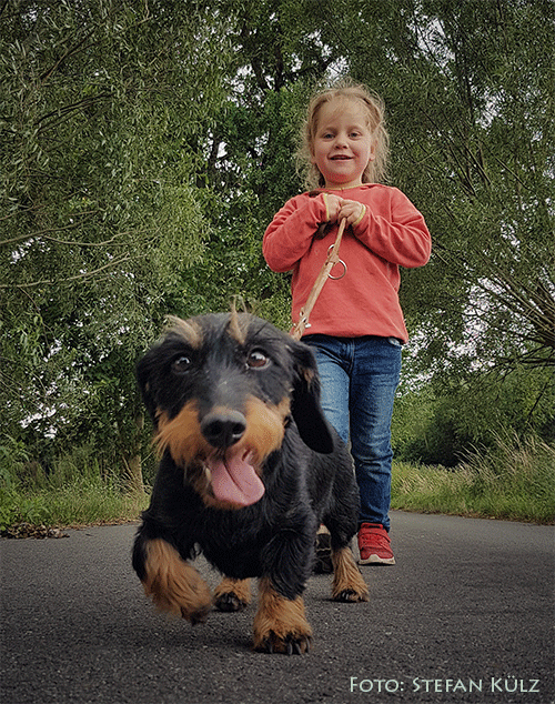Schon als Kind wünschte ich mir so sehr einen Dackel! Dabei schwebte mir sicher ein Rauhhaardackel vor, denn von den anderen Haararten wusste ich noch nichts. Aber ich wuchs stattdessen mit großen Hunden auf: Boxer, Airedale, Schäferhunde, Dobermann, Collies und wie wir sie so der Reihe nach hatten.