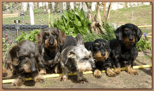 Da wir 1995 aus Potsdam raus ins Städtchen Werder (Havel) gezogen waren, beschäftigte mich bald der Gedanke an eine kleine Zucht. Ich trat am 1. 3. 1995 in den DTK ein - mein Mann ein Jahr später. Ich las und lese alles, was ich über Teckel und Hunde allgemein kriegen konnte und kann, speziell alles rund um die Zucht und das Verhalten. Zwei sehr erfahrene Züchterinnen standen mir bei allen Fragen zur Seite: Elfriede Krüger (Langhaarzüchterin, inzwischen hochbetagt gestorben) in homöopathischen Fragen, Elisabeth Ruge (Kurzhaarzüchterin) in praktischen Dingen. Letztere nenne ich gern meine "Züchtermutter", weil ich von ihr unglaublich viel gelernt habe. Sie starb am 20.9.2003, nachdem sie erst wenige Jahre vorher aufgehört hatte zu züchten. Außerdem bin ich seit dem Frühjahr 2003 Mitglied im Institut für ganzheitliche Hundezucht, wo ich viel gelernt habe und nach dessen Richtlinien und denen des DTK ich nun meine Würfe aufziehe. Ich bin dankbar, dass es diese Züchtergemeinschaft gibt, in der wir uns auf einer anderen, ganzheitlichen Linie austauschen und helfen können.